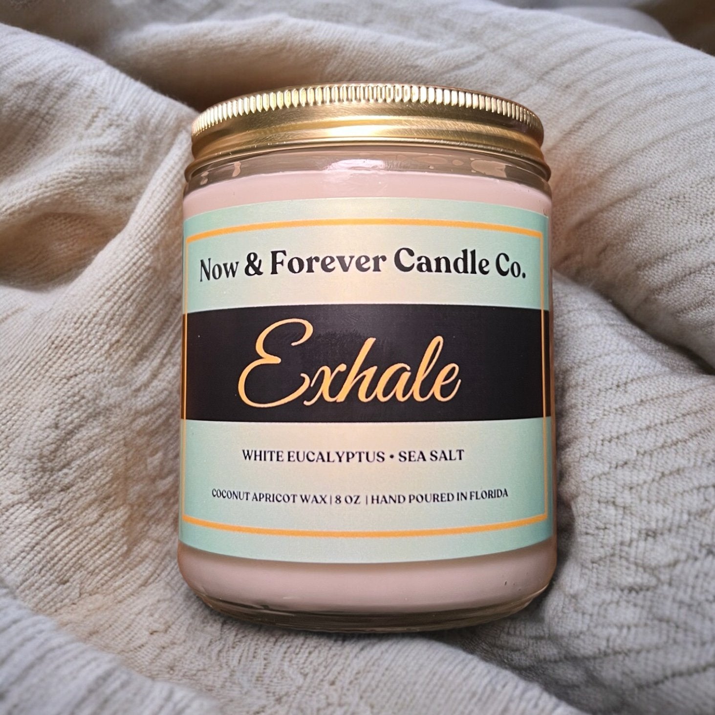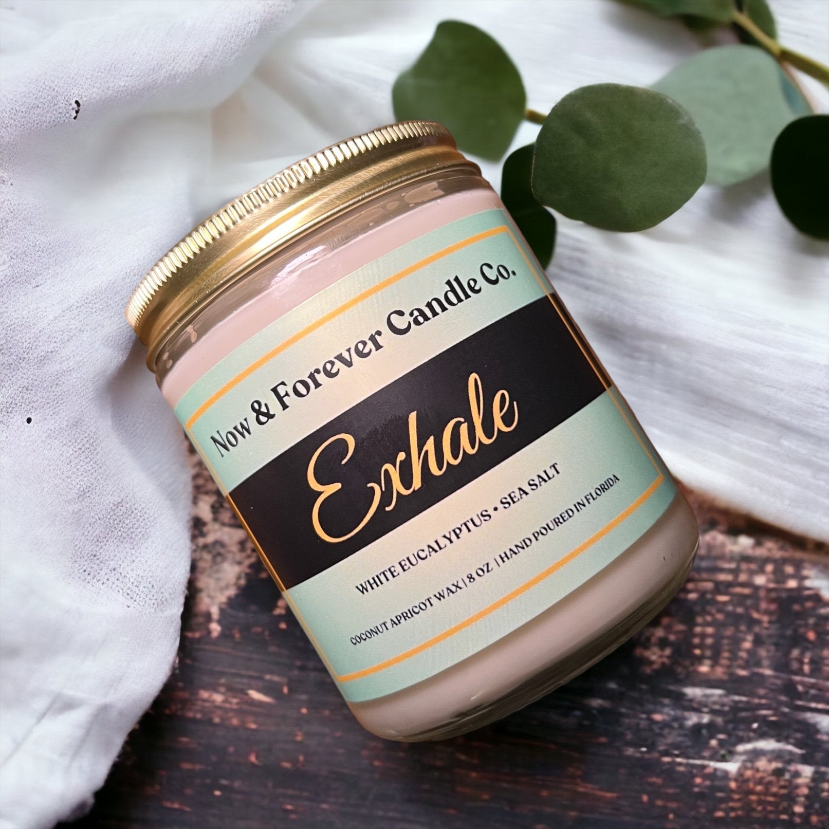 Our Exhale candle is a portal to relaxation, anti-inflammation, and regeneration. With the powerfully soothing fragrance of white eucalyptus, it can not only clear your mind, but your respiratory system. For our lovers who have been waiting to EXHALE.